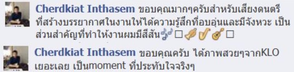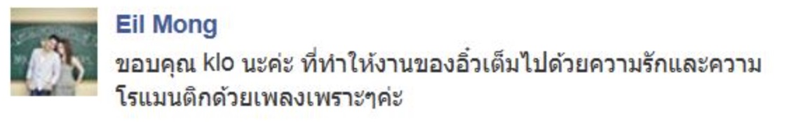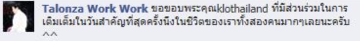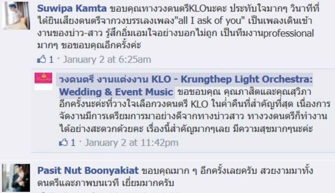 ขอชื่นชม KLO ด้วยอีกสองคนค่ะ สำหรับงานของเราทั้งสองคนเมื่อวันที่ 10 สิงหาคมที่ผ่านมาที่โรงแรมเลอเมอร์ริเดียน KLO ทำให้งานของเราเป็นไปอย่างที่วาดฝันไว้จริงๆเลยเราสองคนมีความสุขมากจริงๆ